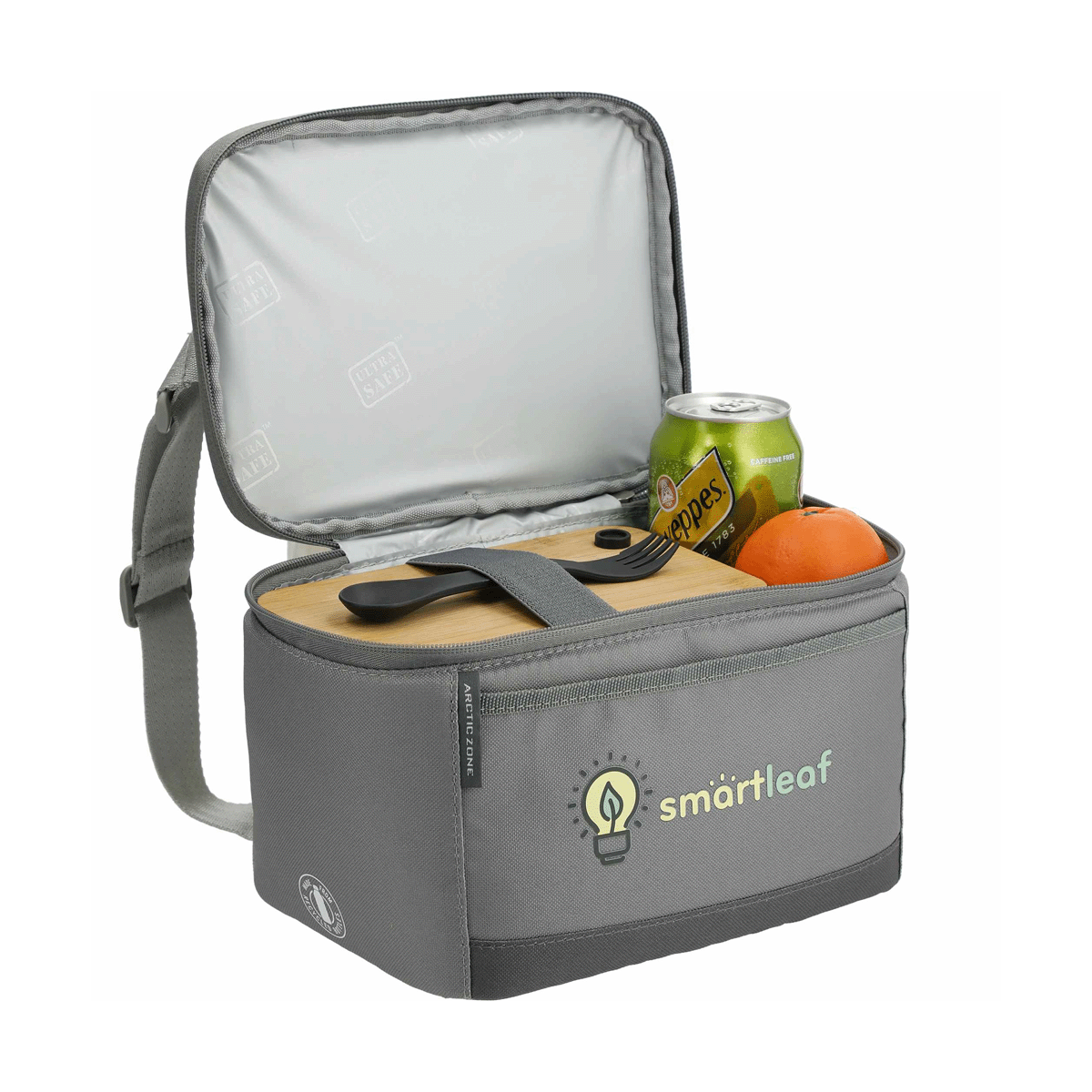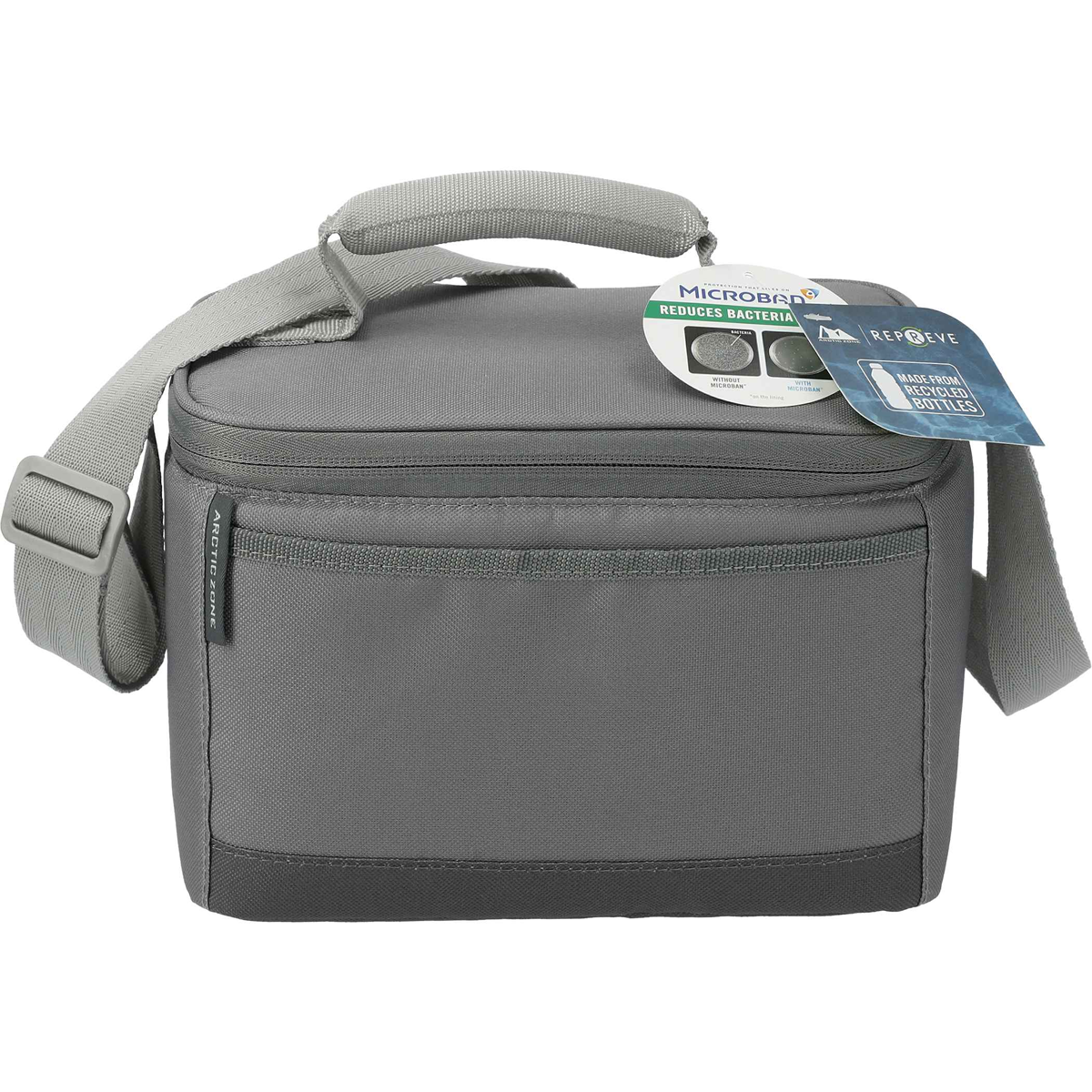 The Arctic Zone® Repreve® 6-Can Lunch Cooler isn’t just a bag—it’s a smarter way to carry your meals. Made from recycled plastic bottles, it keeps your lunch cold while keeping the planet a little cleaner, without compromising on style or durability. The insulated main compartment fits bento boxes, reusable containers, or up to six cans with ease, while the Ultra Safe® leak-proof lining keeps spills and odors in check. Microban® protection means less scrubbing and more peace of mind. Carry it over your shoulder or grab it by the padded handle—the choice is yours. A front pocket keeps your mask, utensils, or snack within reach. Grab yours now before your lunch becomes the only thing on your desk that isn’t cool.